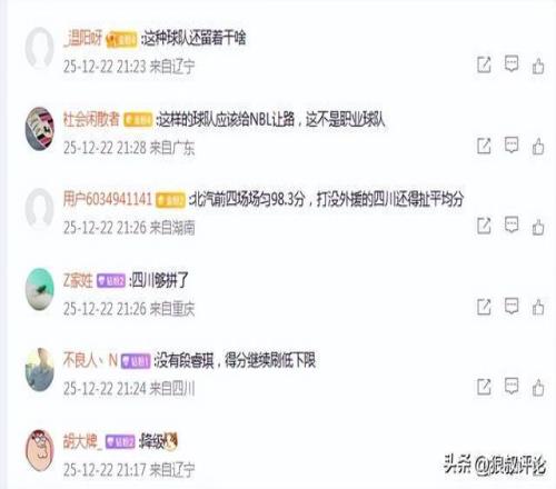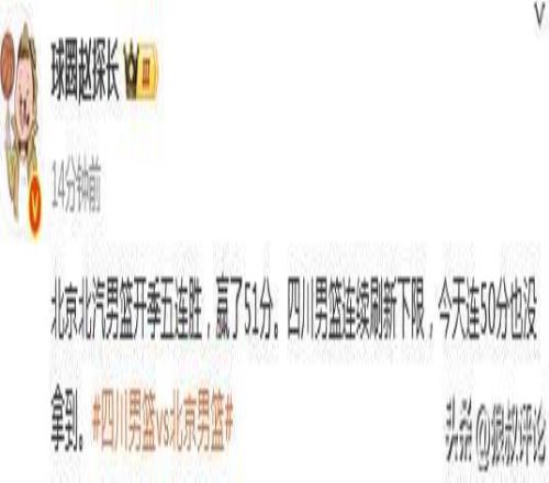 媒体人“刘骁”发文点评:“看了一场四川VS北京,最终四川输了51分,没有外援,加上赛季前的变故,这支球队能站在赛场上已经非常不容易了。然而,更让人感动的是四川球迷,球队这个状况,还能有那么多人去现场支持,值得一个大大的点赞”。