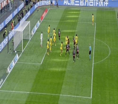 恩昆库打入加盟米兰的联赛首球,进球后展示了标志性的吹气球庆祝。