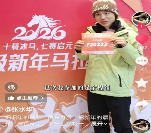 也是在今日,据新闻报道,张水华在12月13日清空其社交平台所有作品后,首次更新了第一条视频,在该视频中她表示将参加2026年东极抚远新年马拉松。12月29日,东极新年马拉松赛事组委会一名工作人员告诉记者,张水华于当天上午到现场领取了参赛物品。