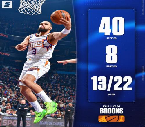 北京时间1月30日,太阳主场114-96大胜活塞拿到二连胜。这场胜利对于凤凰城来说是一场巨大的胜利,活塞是东部第一+联盟第二,而太阳只是西部第七,最关键的是这支太阳没有布克、格林,缺少了两个核心还能将东部第一按在地板上摩擦,新领袖狄龙-布鲁克斯就是第一功臣。