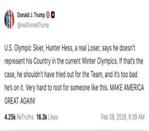 据此前报道,第25届冬季奥林匹克运动会开幕式于当地时间2月6日在意大利米兰举行。在意大利米兰举行的记者会上,美国滑雪运动员亨特·赫斯公开表达了对当前国内局势的复杂情绪。